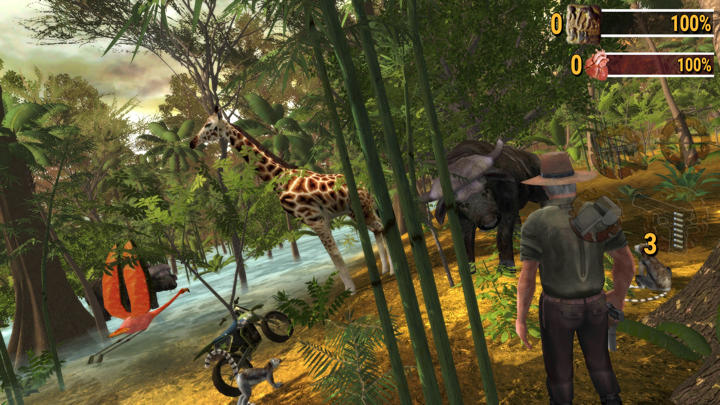 Safari: Evolution a graphiques de haute qualité et gameplay, chasse à pied, 4x4 Jeep, moto, bateau ou cheval - votre fidèle ami - Whistle to Call.