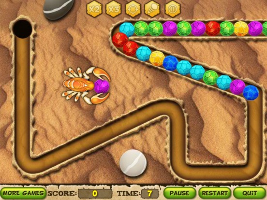 Seebed Blast is a great classic colorful Marble Popper fast-paced game. Every level of this game has unique form and graphic content. Match three or more balls of the same color and delete them with the precise shot of scorpion. Don't let the chain to reach the finish otherwise you will have to pass the level again. Score points, publish best result and have a lot of fun playing this cool arcade game with excellent graphics and addictive game-play.