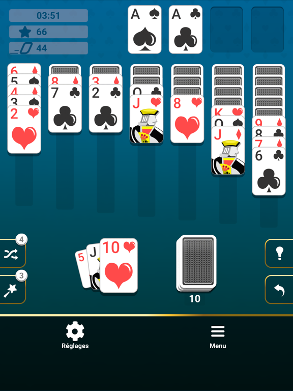 Vous pouvez jouer des parties simples en piochant une carte à la fois ou vous mettre à l'épreuve avec des parties Vegas ou un tirage de trois cartes. Si vous êtes bloqués, utilisez des indices pour avancer. Vous pouvez aussi tester vos capacités avec les défis du jour.