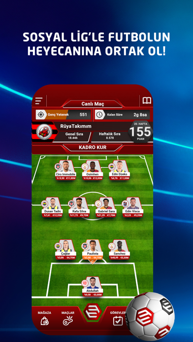 2025 - 2026, yeni sezonda da Sosyal Lig çok daha iddialı! Türkiye Süper Lig yıldızlarıyla kadronu kur, taktiklerini belirle, futbol bilgini göster, canlı maçlara göre puan kazan ve sezon boyunca süren büyük ödüller için yarış!