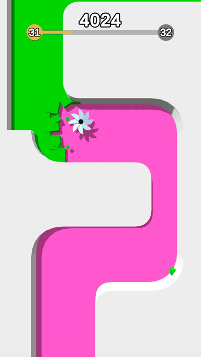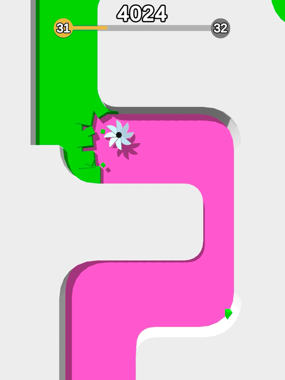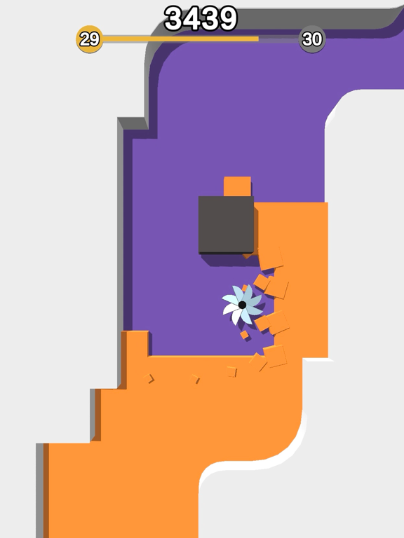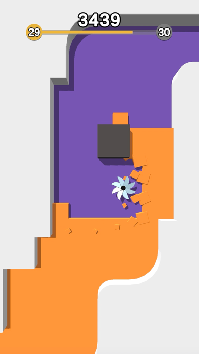 Move the spinner to cut the colored blocks without touching the walls and obstacles.