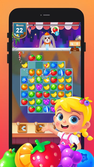 Switch and match fruits in this puzzle adventure to progress to the next level for that sweet winning feeling! Solve puzzles with quick thinking and smart moves, and be rewarded with delicious rainbow-colored juice and tasty fruits!