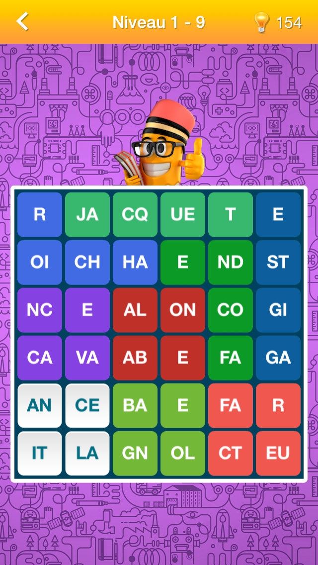 Worders: Parties des mots c’est une continuation du jeu captivant aux mots. L’objectif du jeu est simple: il faut trouver sur champs rectangulaire des mots cassés aux courtes parties/syllabes. Pour passer le niveau, il est nécessaire d'utiliser toutes les parties des mots et nettoyer entièrement le champs.