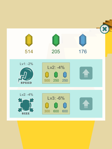 Vous pouvez mettre à niveau la vitesse et la taille de la balle de 3 cristaux de couleurs différentes.