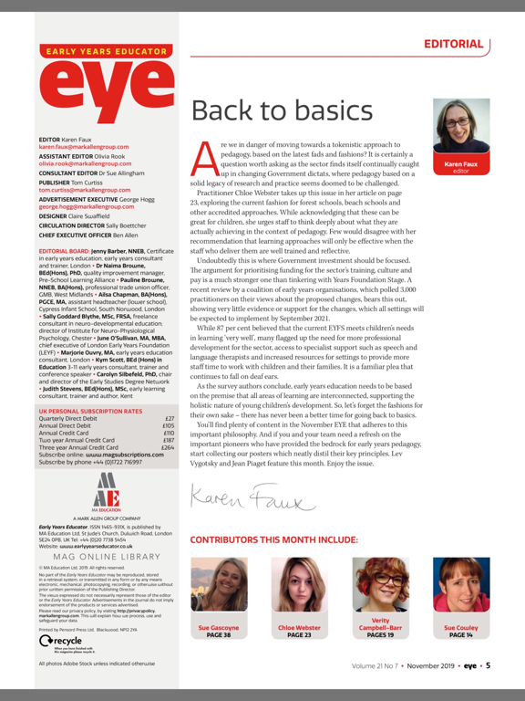 Early Years Educator (EYE) is essential reading for anyone working with children aged from birth to five-years-old.