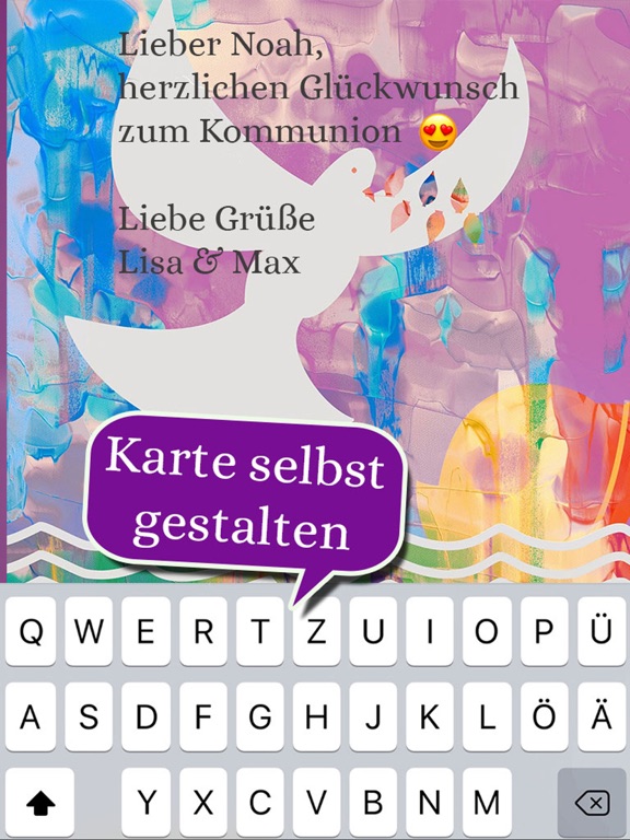 Herzlichen Glückwunsch zur Kommunion oder Konfirmation! Hier finden Sie eine große Auswahl an Gruß- und Glückwunschkarten für beide Anlässe – bereits fertig beschriftet, oder gestalten Sie Ihre eigene Karte.Mit dieser App ist beides möglich – und ganz einfach.