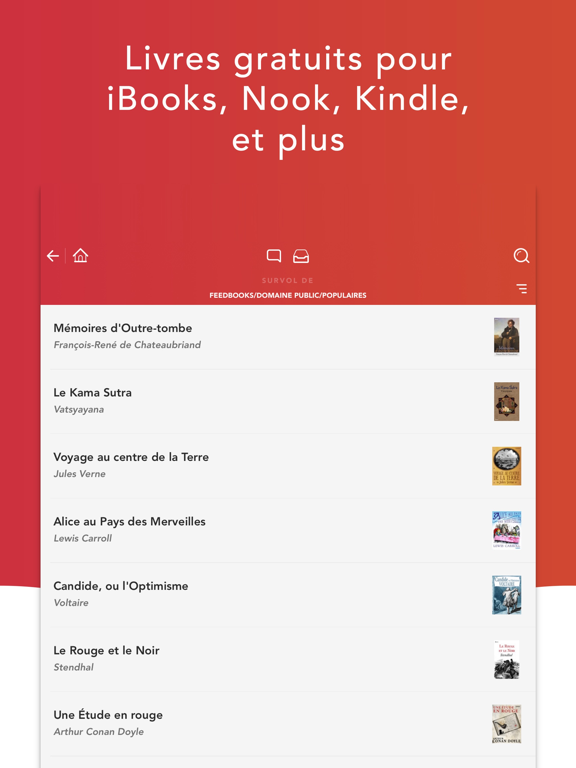 N'importe quel titre, n'importe quel support. Les meilleurs livres font partie du domaine public, et vous pouvez désormais y accéder de partout. L'application effectue la recherche, vous faites la sélection, vous lui dites où la livrer et voilà !