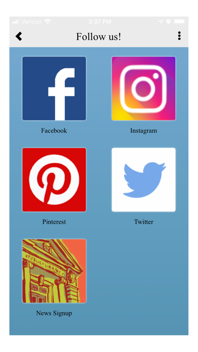 Quick and easy access to the Lebanon Public Library catalog and your library account. An agenda-style list of our upcoming events and classes that link to event registration. All of our e-book and e-audiobook resources in one place. Follow us on social media. Relax with a book or sign up for a class. All in one app.