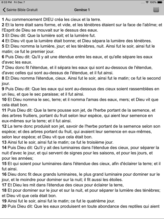 Sainte Bible Gratuit est la meilleure application pour porter la Parole de Dieu. Ayez la Sainte Bible à portée de main à tout moment et où que vous alliez. Cette application biblique quotidienne contient les 66 livres de l'Ancien Testament et du Nouveau Testament, offrant un moyen plus facile de sentir la parole de Dieu dans votre cœur et de sentir le paradis plus près de vous et de vos proches. Transportez votre Sainte Bible gratuite où et quand vous le souhaitez pour éclairer votre esprit avec la Bible App la plus complète, rapide et facile à utiliser sur l'App Store.