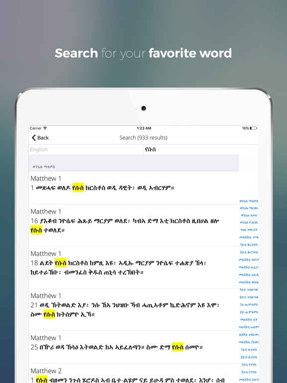 Holy Bible in Tigrigna comes with all 66 books of old and new testament. Offered with essential iOS features, utilizing the power of apple device for Tigrigna speaking community.
