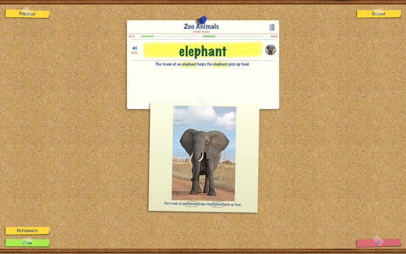 SpellBoard dispose également d'un mode d'étude où vous pouvez consulter à travers un quiz et voir et d'entendre le mot et la phrase, vous pouvez même obtenir une définition pour le mots.