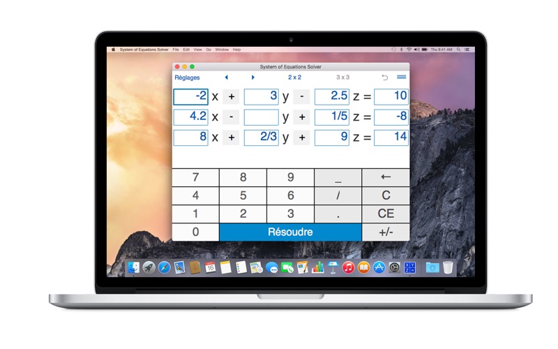 Pour résoudre un système d'équations entrez les coefficients de toutes les variables et cliquez sur Résoudre.