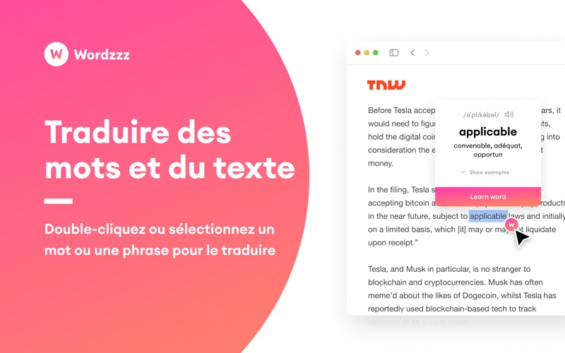Double-cliquez ou sélectionnez n'importe quel mot ou phrase pour le traduire instantanément.