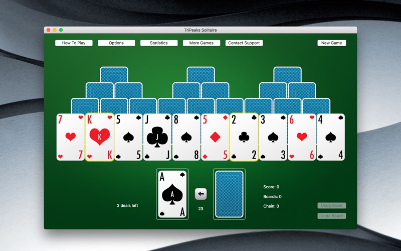 A classic variant of Solitaire, TriPeaks is easy to pick up and hard to put down. In this single-player card game, work your way from the bottom to the top of the three peaks, clearing away runs of consecutive cards.