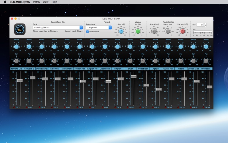 DLS-MIDI-Synth is a front end for the built-in Apple OS X DLS synthesizer. It can be used with any MIDI program or directly with a MIDI keyboard. It turns your MAC computer so to speak, in a 16-channel MIDI expander.