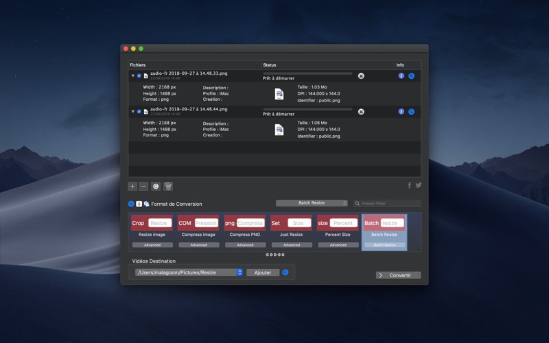 Il vous permet de simplement changer le format de vos photos (jpeg, png, tiff, ...). Vous pouvez aussi redimensionner par lots vos photos et ainsi gagner en espace disque.