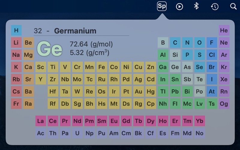 - Clicking on the element symbol in the menu bar app takes you straight to the Wiki page rather than opening the app.