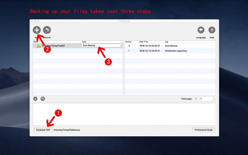 “File Backup” software is a design file backup software for individual users, It has “Concise Mode” and “Professional Mode”. The “Concise Mode” is designed for most users, It will automatically back up new files, Modified files, deleted files, you can restore to any backup version; "Professional Mode" is designed for users who need high backup, it has a powerful file backup function.