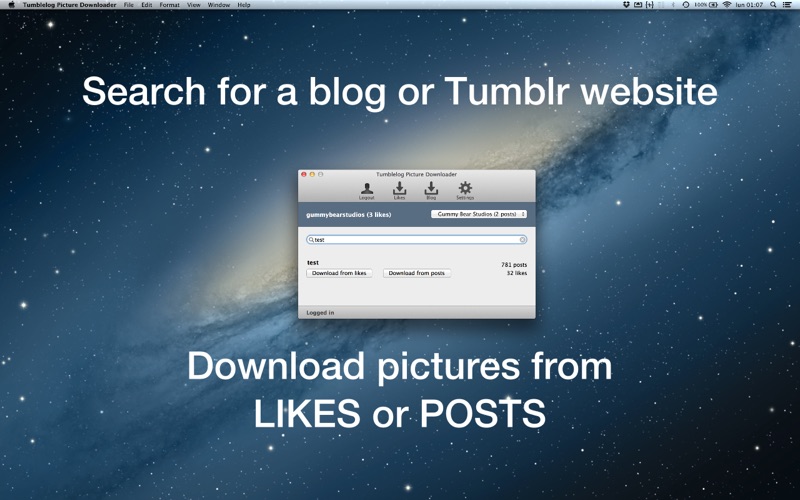 Instead of saving pictures manually from a web browser, which can be slow and time consuming, simply specify a Tumblr account you want to download pictures from and press Download! It's as easy as pressing one button!