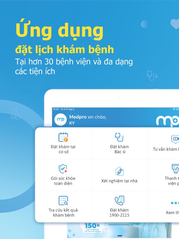 Medpro không chỉ là một ứng dụng đặt lịch khám bệnh, mà còn là trợ thủ đắc lực trong việc quản lý sức khỏe của bạn. Ứng dụng cho phép bạn đặt lịch nhanh chóng, kết nối trực tiếp với bác sĩ và dễ dàng quản lý thông tin y tế cá nhân một cách tiện lợi và hiện đại.