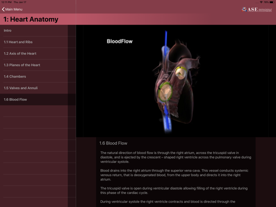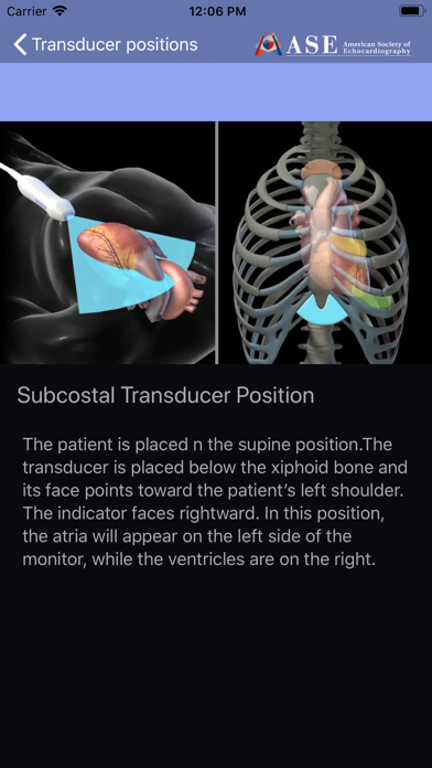 The ASE TTE iPad App 2.0.1 provides all of the animated content from the American Society of Echocardiography’s DVD entitled "How to Perform a Transthoracic Echocardiographic Study Volume 1: Transducer Position and Anatomy”.