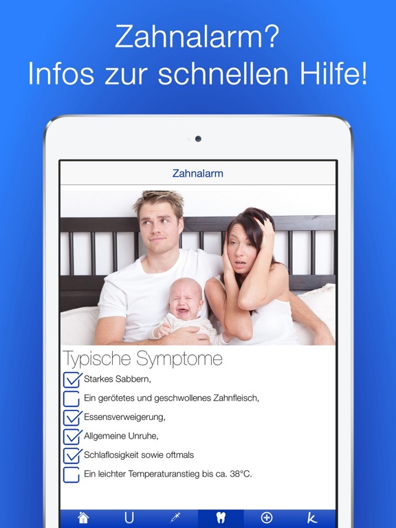Durch die U-Übersicht (U1-U6) bist du in Punkto Termine, Untersuchungsablauf und Meilensteine (vgl. „Oje, ich wachse!“) immer rechtzeitig informiert und behältst den Überblick über Knöpfchens Entwicklung. Die weiteren Checklisten (Impfpläne, Krankheiten, Zahnen, Zahnpflege, Hausapotheke, Arztnotfall, Krankenhausnotfall, Vergiftungsnotfall) helfen dir und deinem kleinen Knopf bei seinem Start ins Leben und unterstützen euch bei ersten Schwierigkeiten. Wieso sind Masern so gefährlich? Wo kommt der nächste Zahn? Wann solltest du mit deinem Baby besser ins Krankenhaus fahren? Bei all dem hilft dir unsere App weiter, so dass ihr das erste gemeinsame Jahr möglichst unbedarft genießen könnt.