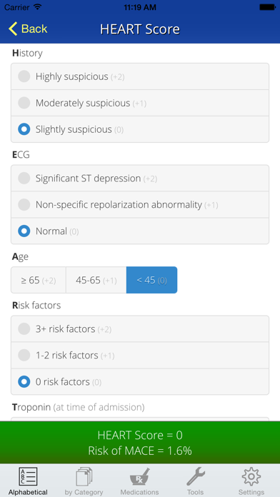 • Score calculators for over 60 clinical decision rules