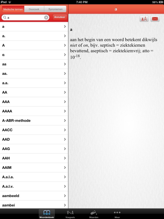 De Coëlho, Zakwoordenboek der Geneeskunde – het rode boekje – is er nu ook als handige app. Zoek snel en offline in de ruim 4.000 medische termen en afkortingen die met een A, B of C beginnen. En vind de uitgebreide uitleg, inclusief links naar verwante termen.