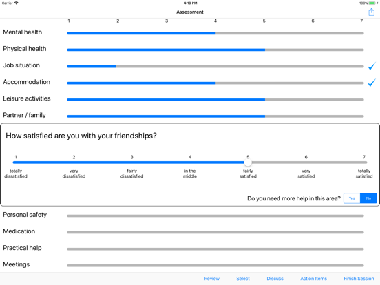 ‘DIALOG+’ – adds a therapeutic approach to the above for addressing areas in need of improvement. Topics can be selected for further consideration using a solution-focussed 4-step approach to problems. These steps are (i) understanding, (ii) looking forward, (iii) exploring options and (iv) agreeing on action. Specific action items can be recorded and reviewed later.