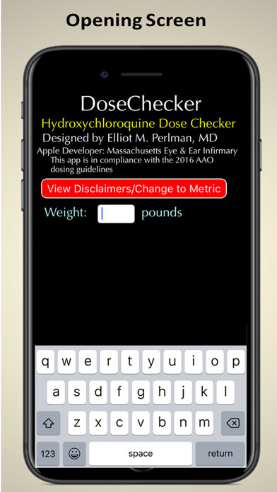 The DoseChecker app is simple to use. The clinician just enters the patient’s weight in pounds or kilograms and touches the calculate button. The recommended weekly dosing appears immediately. In addition, the dosing recommendations always fall within the approved drug labeling (which also obviates the need for FDA mobile medical app registration). Thus, all physicians can use the app to rapidly and efficiently determine the safest dose of hydroxychloroquine--the most important step in preventing irreversible vision loss from hydroxychloroquine retinopathy.