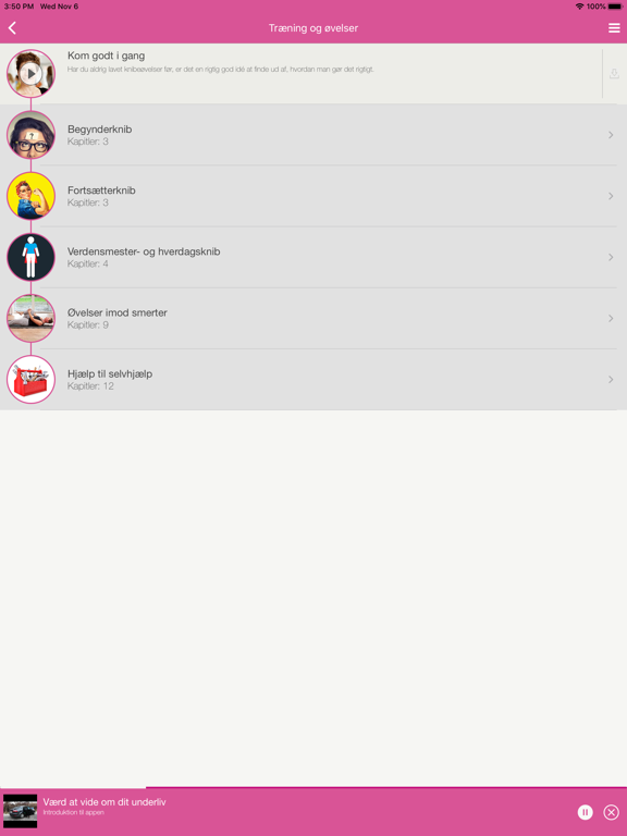 Formålet med denne app er at give dig viden og redskaber til at kunne forebygge og afhjælpe bækkenbundsproblemer, og ikke mindst til at søge den rette behandling, hvis du har brug for det.