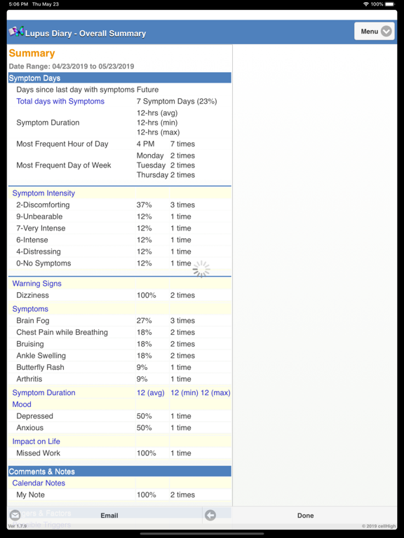 Are you like one of the millions of people who have Lupus? How can the Lupus Diary help? The Lupus Diary was designed to track information about your Lupus with a few screen taps. Using this information, the application will allow you to use triggers, like day of month and week, weather patterns, diet, sleep patterns, to predict and manage your Lupus. The Lupus Diary has a new “Trending and Forecasting” module that shows you which factors and triggers contribute to your fatigue and symptoms. This will help you feel better and will allow you to take control of your Lupus. The Lupus Diary makes it easy to perform tasks like tracking your treatment progress, graphing your patterns, emailing reports, including graphical attachments to your doctor and advisors. The Lupus Diary will also allow you to export your data to a spread sheet all with just a few screen taps. Do you want all of your health records and information at your fingertips so that you can start feeling better. The Lupus Diary can help.