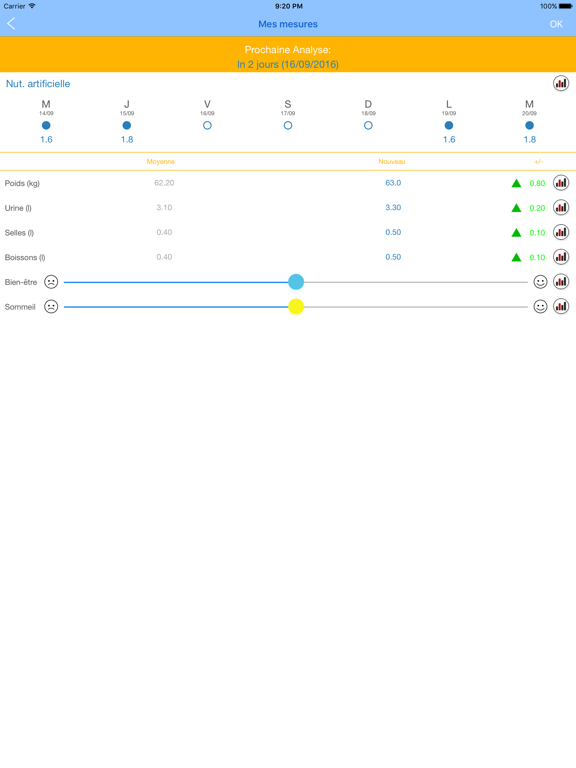 - enregistrer la nutrition parentérale et entérale prescrite et réellement administrée, les boissons ingérées, les urines, les selles, la qualité de vie ;