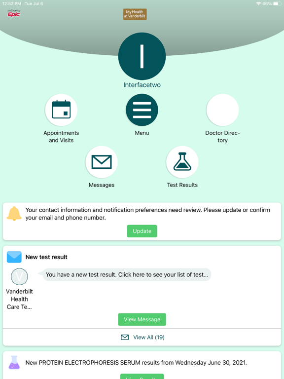 Access your current My Health at Vanderbilt account on the app to: