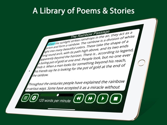 - Built-in library of phonemically-balanced reading passages (The Rainbow Passage, The Grandfather Passage etc)
