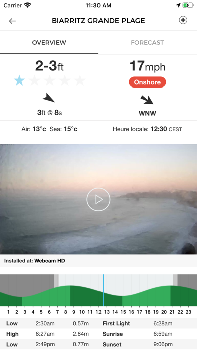 -Afficher la hauteur des vagues, le vent en direct, la météo, la température de l'eau et la marée.