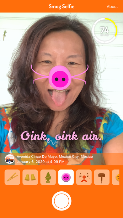 Smog Selfie retrieves the "Air Quality Index" for your location and displays a set of corresponding AR face filters: Ready for a smog selfie.
