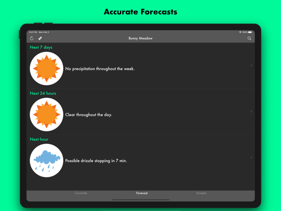 Enjoy daily, hourly, and minutely graphs for an array of weather information.