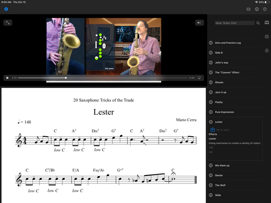 From saxophone technique to improvisation, multiphonics, effects and articulation, this app will keep you busy for a long time. Options include all PDF files and audio tracks needed for soprano, alto, tenor and baritone saxophones, as well as videos and demonstrations in English and Spanish.