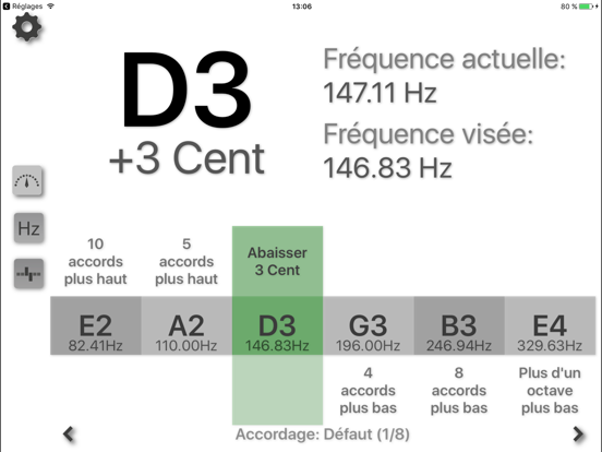 • presentation de la fréquence exacte ainsi que de la fréquence ciblée pour l'accord le plus proche