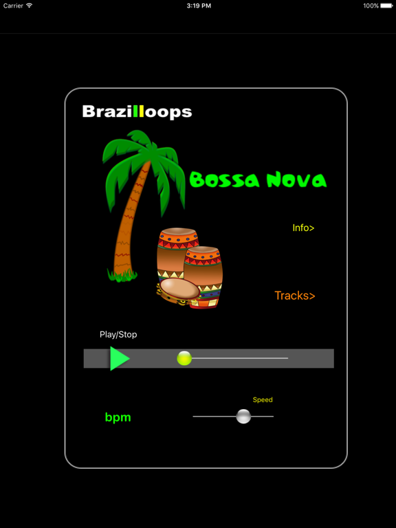 Get this genuine Ipanema beach feeling with 4 different samba/bossa styles, 3 of them with three bundled instrument tracks with mute and volume control functions.