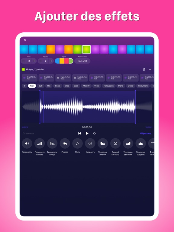 Create your own sound packs: sample audio from video, import your own audio files, use our sounds, record vocals or real instruments with a microphone. Make your sound pack and share it. Collaborate with your friends and make something absolutely new (or funny ;) ).