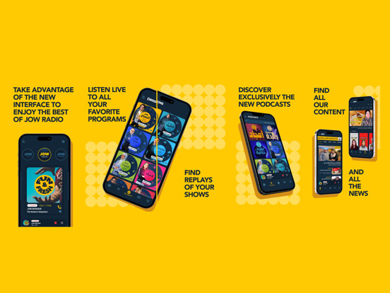 Écoutez la radio en live, Identifiez les titres en cours, passés ou à venir, accédez au podcasts de toutes les émissions, Enregistrez les émissions pour les écouter en offline, faites partie de la communauté des jowistes pour gagner des cadeaux et participer activement à la radio ! L’application Jow est téléchargeable gratuitement et vous garantira la meilleure expérience radio qu’il vous faut.