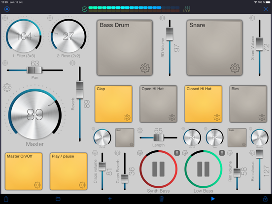 Pads are special controls: they can either produce MIDI CC events, Notes or Program changes. If bound to a CC, the pad can act as an on/off switch (you specify the values for each state.) If bound to a note, each tap produces the specified MIDI note. This is especially useful to operate MIDI instruments without keyboards such as synthesizer modules or drum machines.