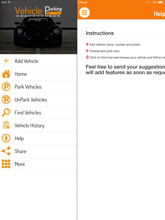 Now at end of your day, you need to find vehicle, just open app click on Find vehicle, select your vehicle and it will show you exact place where it is. Follow navigation and you will get perfect position of your vehicle.