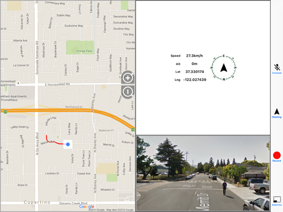 Please say “Recording” and the recording will start/stop. Or tap the record button/compass arrow for starting to record.