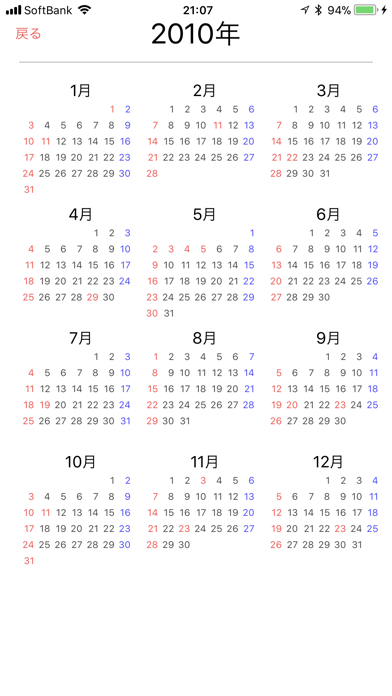 ・カレンダー画面の年月部分をタップすると、1年画面が表示されます。ここで、遷移先の月をタップします。