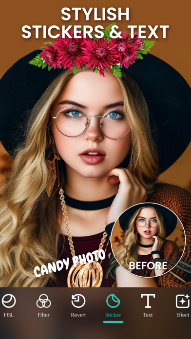Candy Face Filters, Stickers is your ultimate selfie and photo editing app, packed with all the tools you need to capture the perfect shot and create stunning photos. Whether you want to enhance your natural beauty, add fun effects, or completely transform your images, this app offers a wide range of trendy features and filters to help you achieve the perfect look every time.