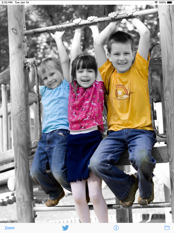 La création d’une image de couleur brillante est aussi simple que de dessiner avec ses doigts. Commencez en prenant une photo avec votre appareil photo et en la chargeant en mode noir et blanc. Puis utilisez votre doigt pour recolorier des parties de l’image. Zoomez sur l’image pour colorier des détails ou utilisez la fonction "Effacer" pour ôter des couleurs auparavant ajoutées.
