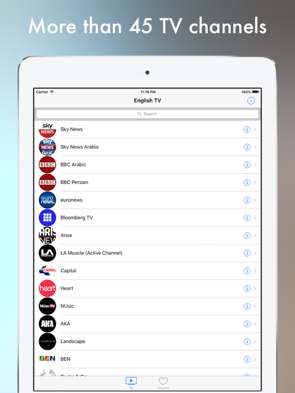 Install a mobile application English TV! Sometimes there are situations when you need to watch TV online some channel. If you're behind a stationary computer or watching TV - it's not a problem, but if you're on vacation or on the road, then mobile app English TV will help you. English TV broadcasts the most popular TV channels of England via the Internet.